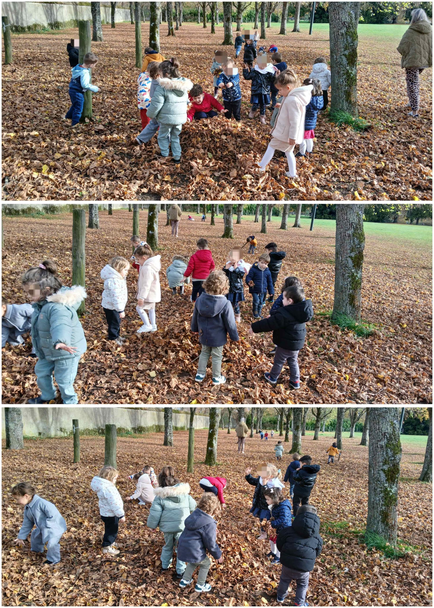 Nous avons profité de la sortie à la bibliothèque pour prolonger en école dehors dans le parc du château. Nous avons observé les arbres et les couleurs de l’automne, nous avons vu et écouté des oiseaux. Nous avons marché dans des feuilles mortes, construit un château très haut avec, nous avons aussi fait la ronde autour puis nous avons eu un plaisir fou à le piétiner ensuite !